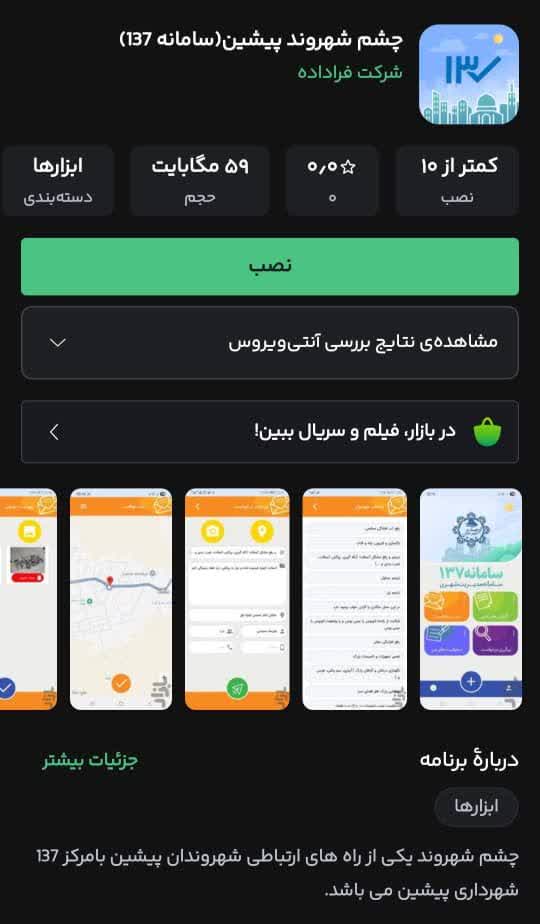 «چشم شهروند پیشین(سامانه 137)» *را در بازار اندروید دانلود کنید